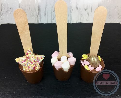 These make a great gift for Easter, and a little different to just a chocolate egg. Three hot chocolate stirrers made with the finest Belgian chocolate, decorated with a variety of toppings. Simply stir into hot milk and enjoy!