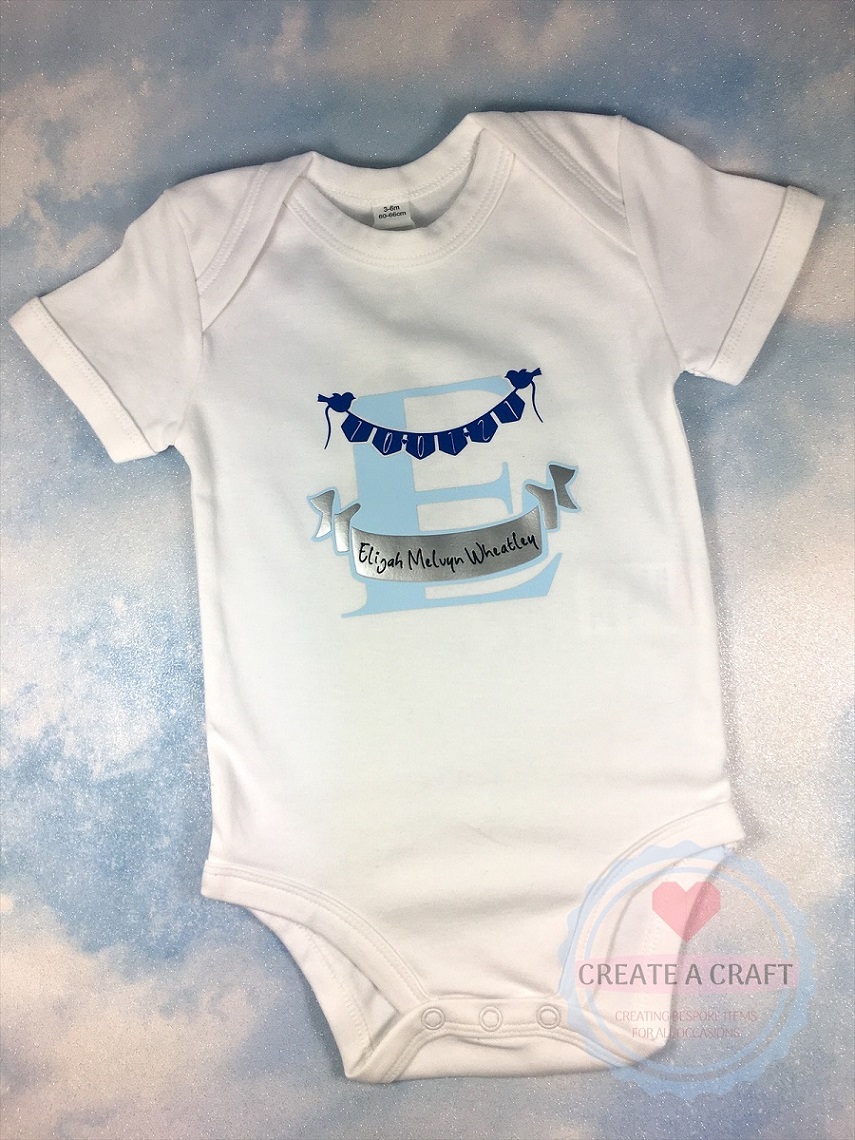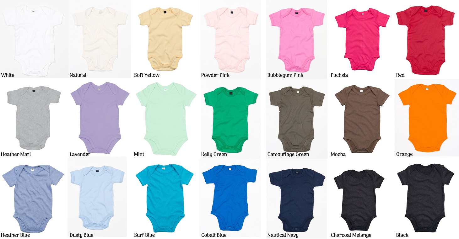 Baby bodysuit, available in a range of colours, and personalised any way you choose.