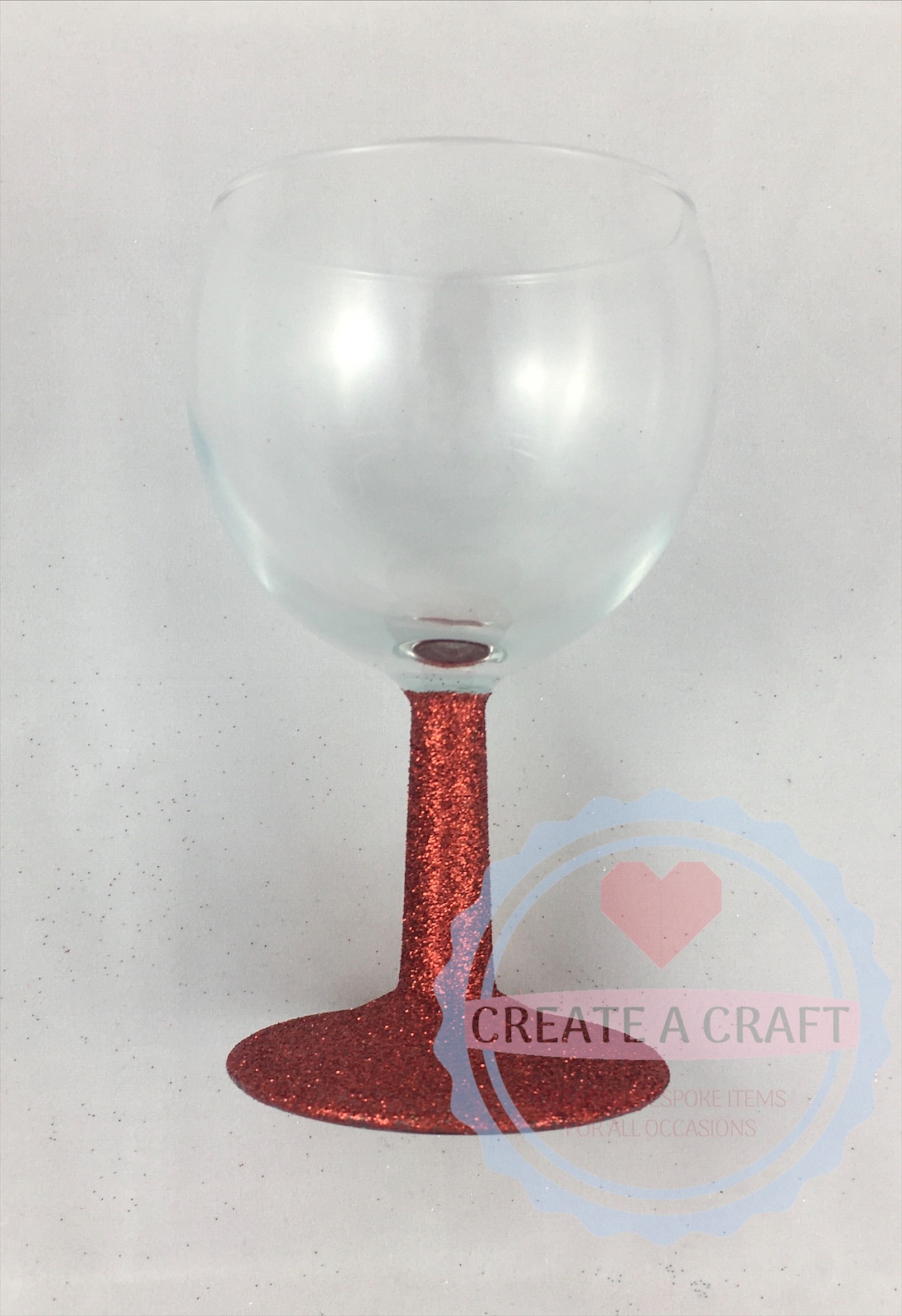 Small wine glass, with glitter stem in a colour of your choice and personalised as requested.