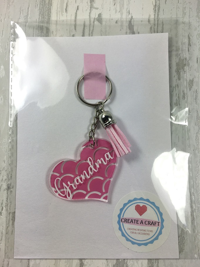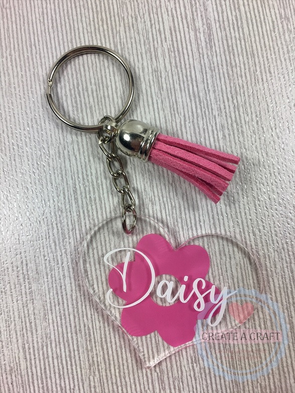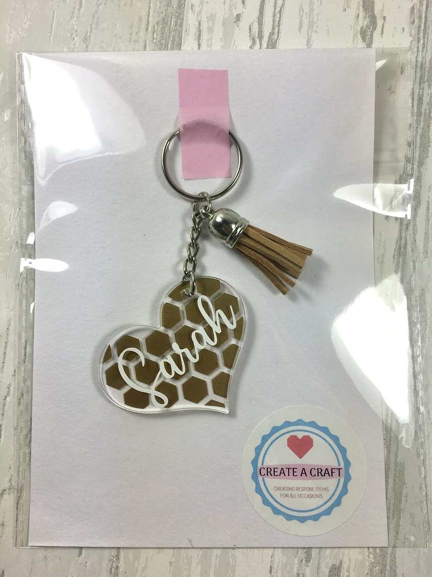 Acrylic keyring, personalised with the name and background of your choice, complete with a matching tassel.